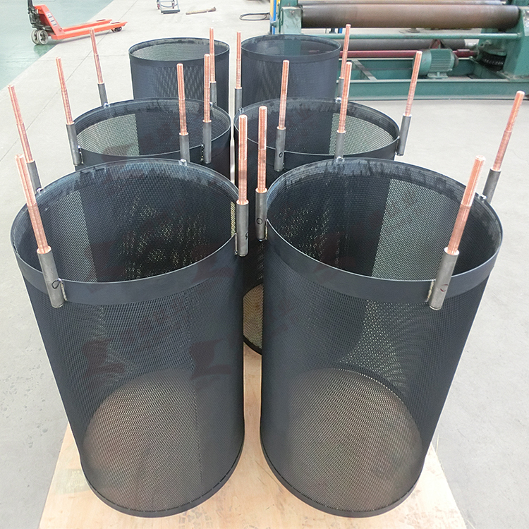 電鍍用不溶性陽極是在鈦基體 (網(wǎng)狀、板狀、帶狀、管狀等)上涂覆具有高電化學(xué)催化性能的貴金屬氧化物涂層,涂層中含有高穩(wěn)定性的閥金屬氧化物。此陽極廣泛用于鍍鎳、鍍金、鍍鉻、鍍鋅、鍍銅等電鍍有色金屬行業(yè)??梢蕴娲R?guī)的鉛基合金陽極,在相同的條件下,可以降低槽電壓,節(jié)約電能消耗;電鍍用鈦陽極在電鍍過程中具有良好的穩(wěn)定性(化學(xué)、電化學(xué)),節(jié)能顯著,穩(wěn)定性高、速度快、不污染鍍液、重量輕、使用壽命長、易于更換。